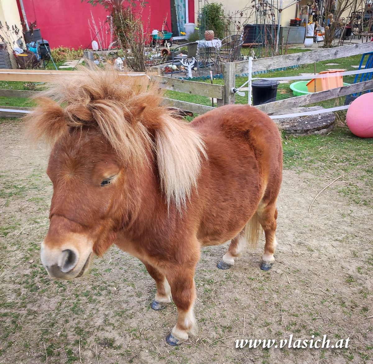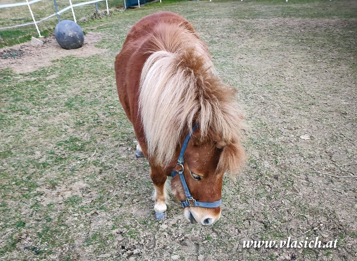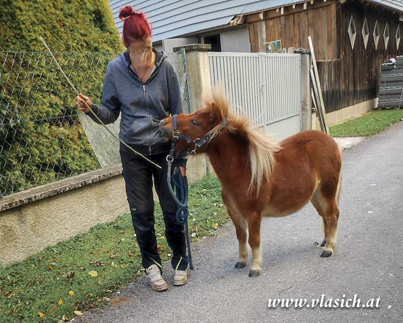 Mit den Mini-Shettland-Ponies können wir Bodenarbeit und führen machen.